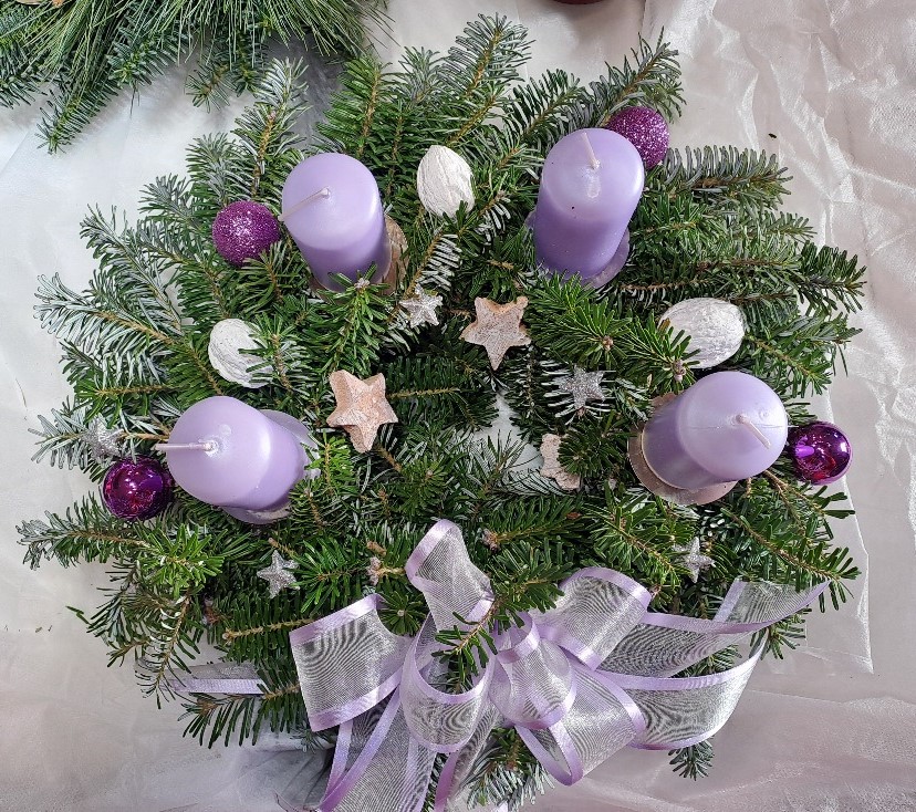 Z jedle korejské. Zdobený ve světlě fialovém tónu.